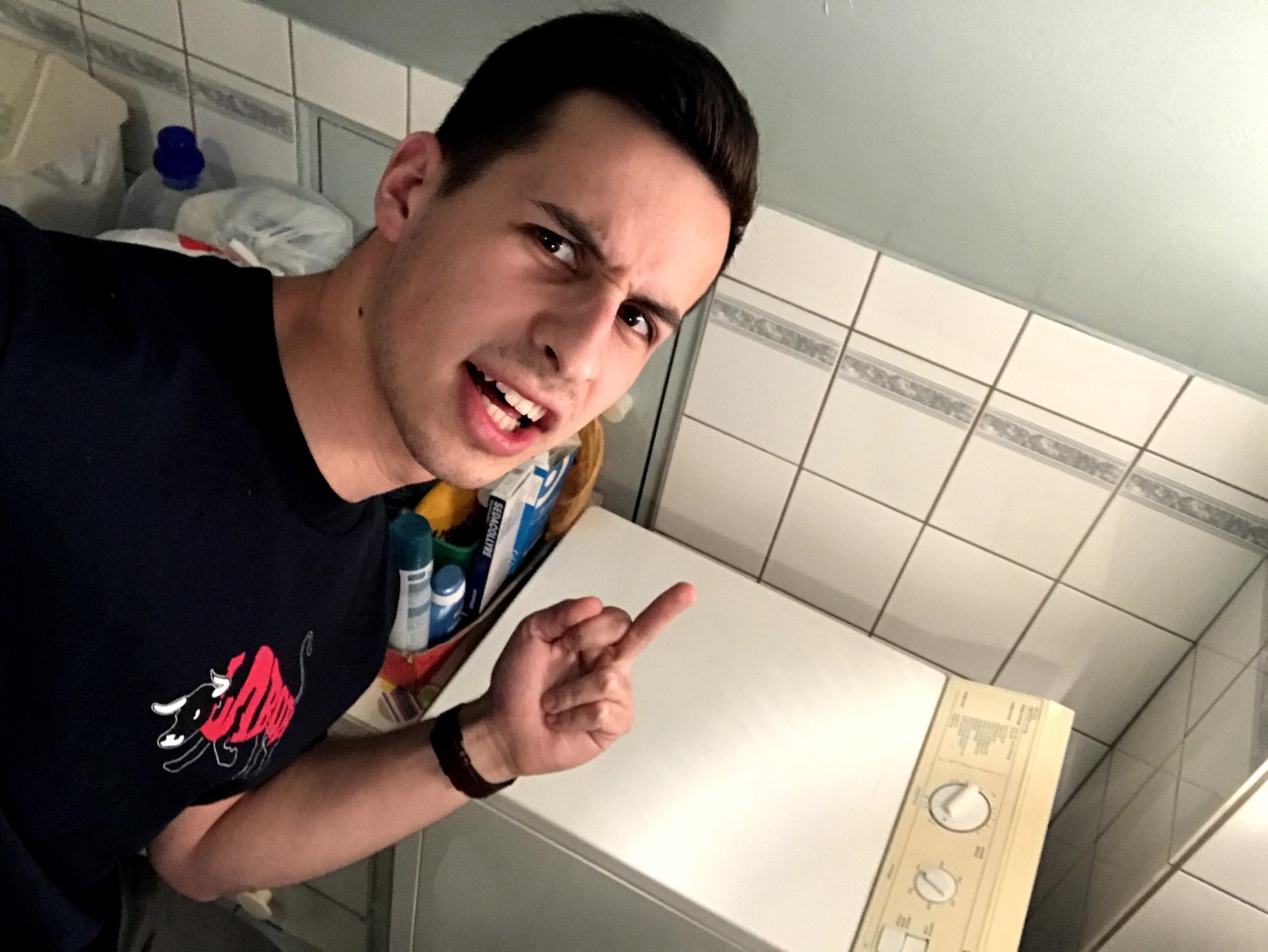 I heard someone walking up the stairs and it was no other than Anne-Marie herself. She heard the noise of the washing machine and headed into my bathroom, uncharted territory for her normally. I peered through the crack in my door and watched with fear. This could potentially be the end of me, my clothes and this blog.