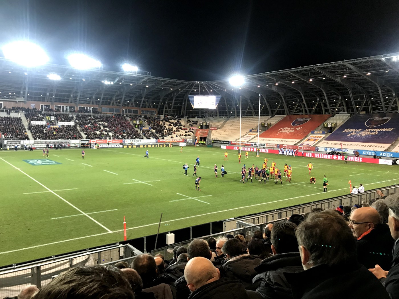 I found my friends and we all headed inside. My friends Julien and Mats play rugby for BU, so I’ve been to a good amount of rugby games before. This was something else completely though, and the stadium was packed and full of energy. I get rusty with some of the rules in rugby, but soon we were all yelling in French at the Grenoble team. The main chant was “Allez!” which meant “Let’s go!”. I also got to practice some of my new French curse words that I learned in class earlier.
