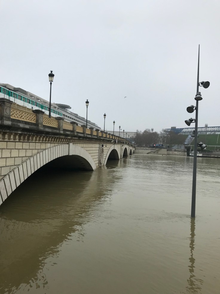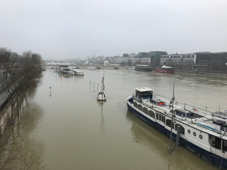 We parted ways with some of our other BU friends, then Jonathon, Nick, Katie and I headed off into the city. One of the first things I recognized was the overflowing Seine River. It has been on the news a bunch and several low level streets were completely under water. Additionally all river traffic has been suspended as boats could no longer fit under bridges.