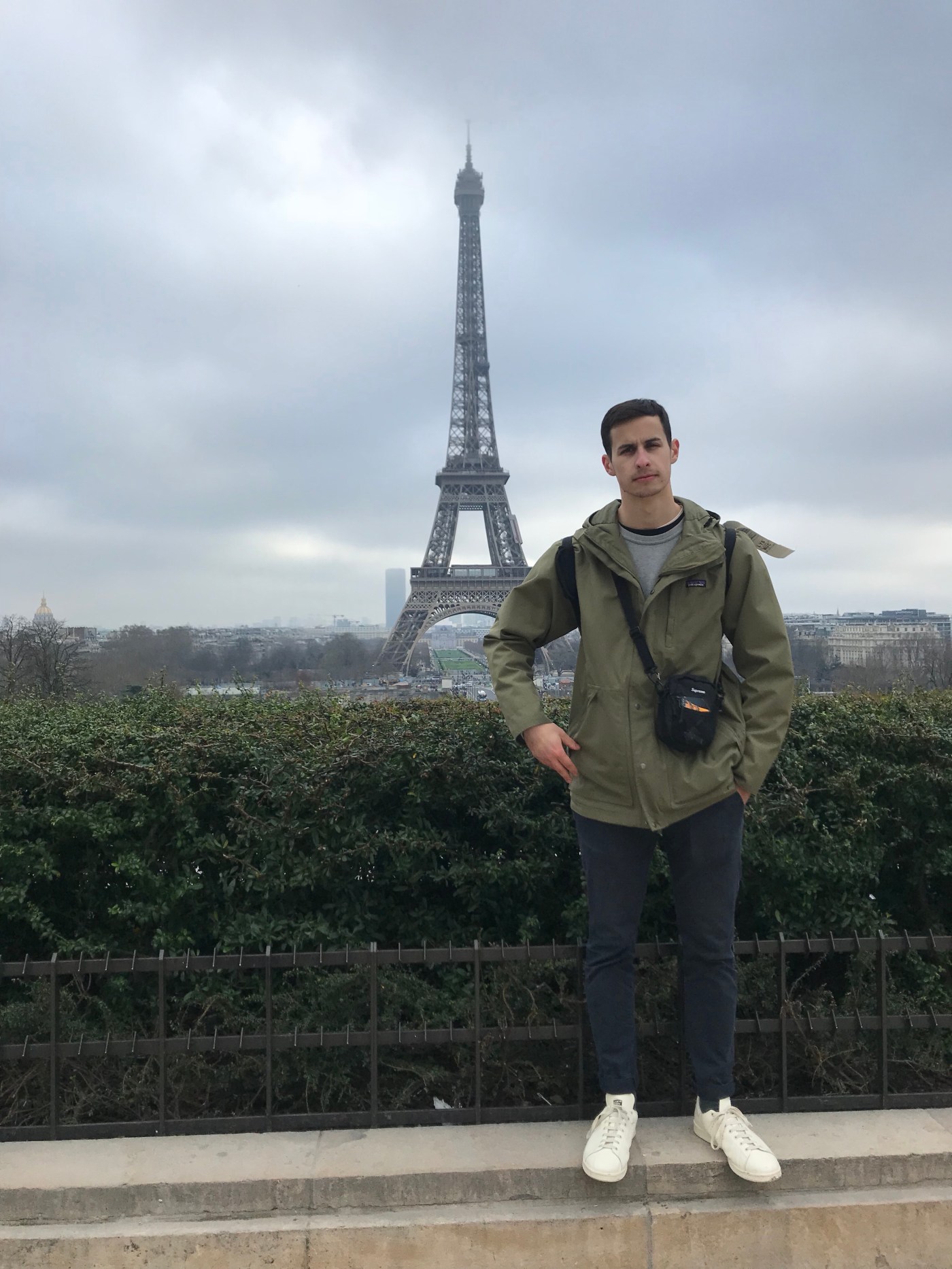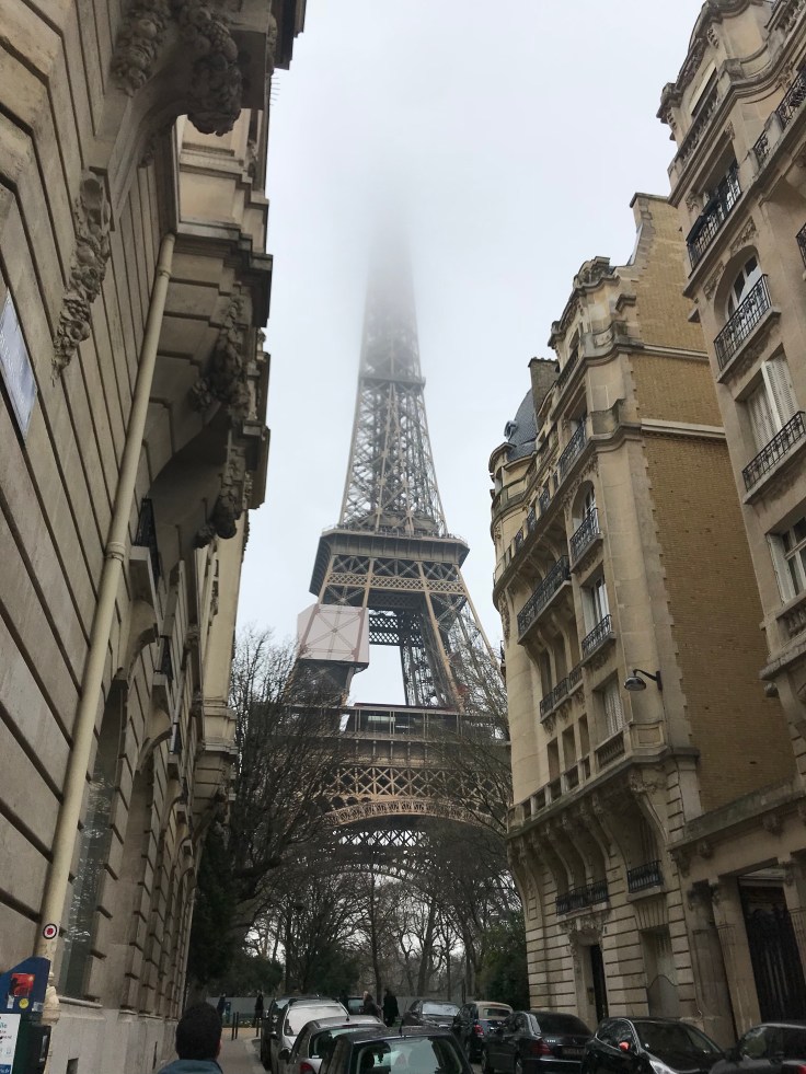 We got off on our stop, and began to walk around. Since I had gotten to Paris, it really just seemed like a bigger Grenoble to me. This was until I spotted the Eiffel Tower for the first time. This may be one of the most touristy locations in Paris, but seeing it in person for the first time was truly cool. It was a bit foggy at the time and the top was hidden from view.