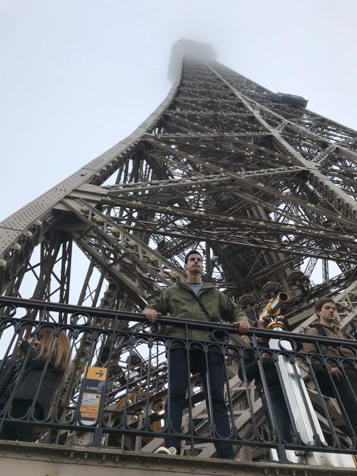 Ever since the multiple terrorist attacks in Paris and France of recent years, security is now very strict. Just to go underneath the Tower, we all had to go through TSA like security. Fortunately, me and my 40 lb bag got through alright. We quickly found out the top of the tower was closed, but you could pay 8 euros to go 2/3 of the way up. Nick, Katie and I bought tickets while Jonathon stayed at the bottom with our bags. This was Jonathon’s fourth time in Paris and he had been here a few times. I was just happy not to lug my bag around for a bit.