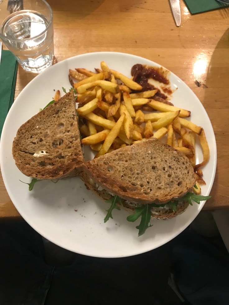 I was really tempted to get the corned beef and cabbage, but I ended up getting a club sandwich because it was significantly cheaper. The food took a really long time to come out, and our waiter told us that he had forgot to put the order in. We weren’t annoyed too much because he promised us some free desserts.