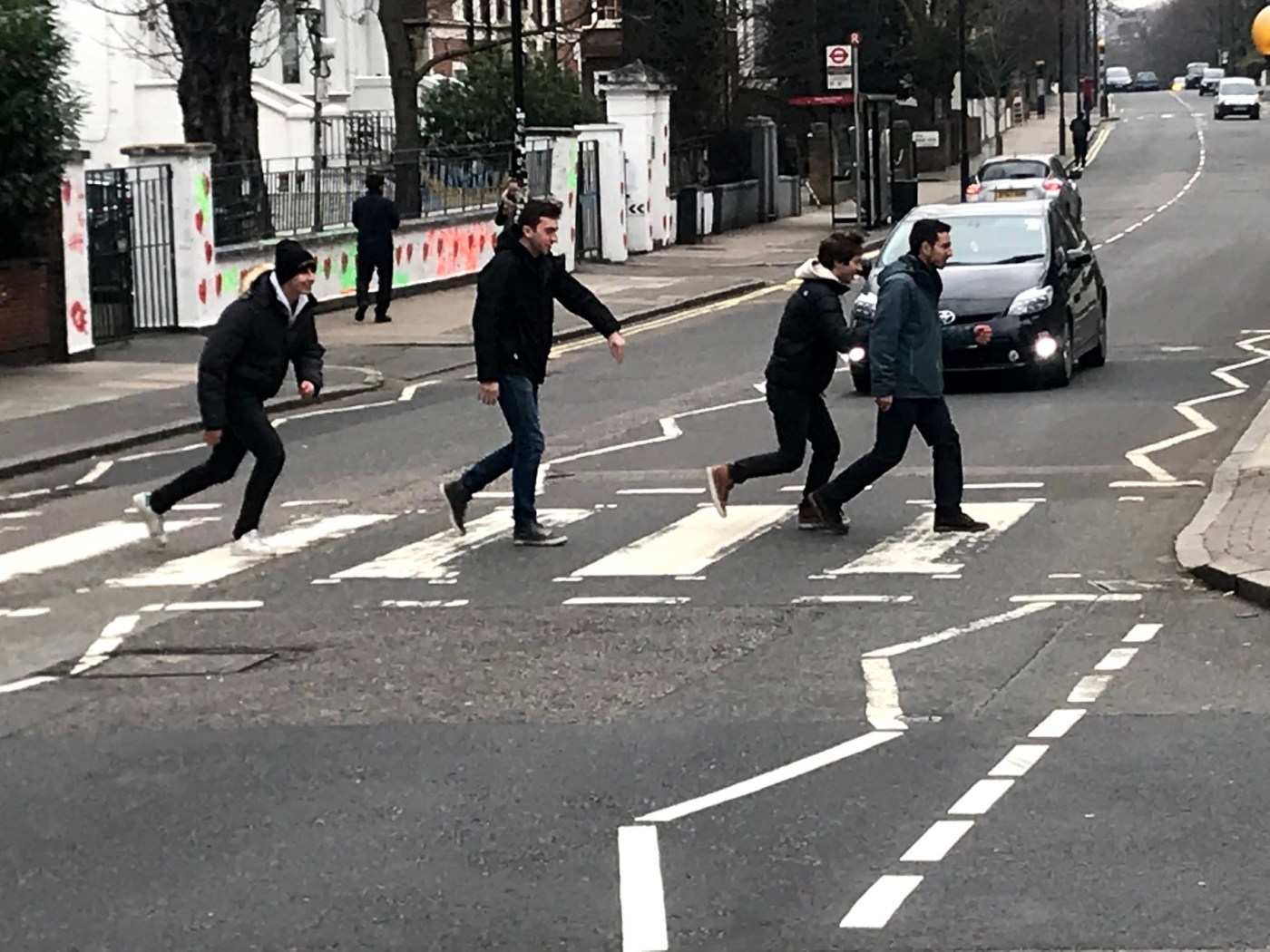 Sebastian volunteered to take a picture of the four of us crossing. This proved more difficult than we thought. This crossing has some pretty heavy traffic and there wasn’t an ideal spot to take the picture. You had to time the cars, crossing, and photo perfectly.