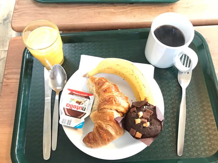 Our plan was to stuff ourselves on food, then use a plastic bag to steal some for lunch. The buffet was amazing and featured: croissants, pain au chocolat, toast, muffins, and sandwich materials.