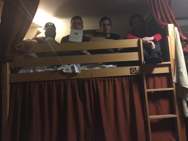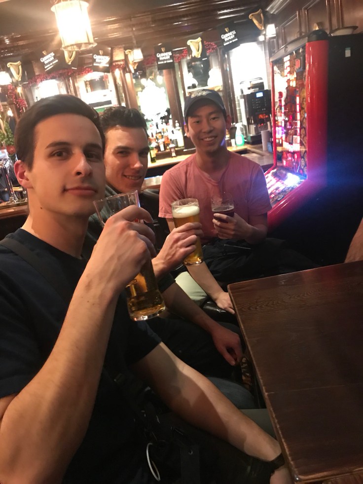 When I went back upstairs, we made plans to meet my ZBT friends Alex and Will at a pub near them. Some other hostel people were kind enough to give us a boxed wine they didn’t want. You’re not supposed to drink in this hostel, so four us all got into one bunk bed and discreetly drank the wine.